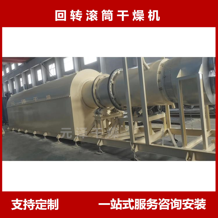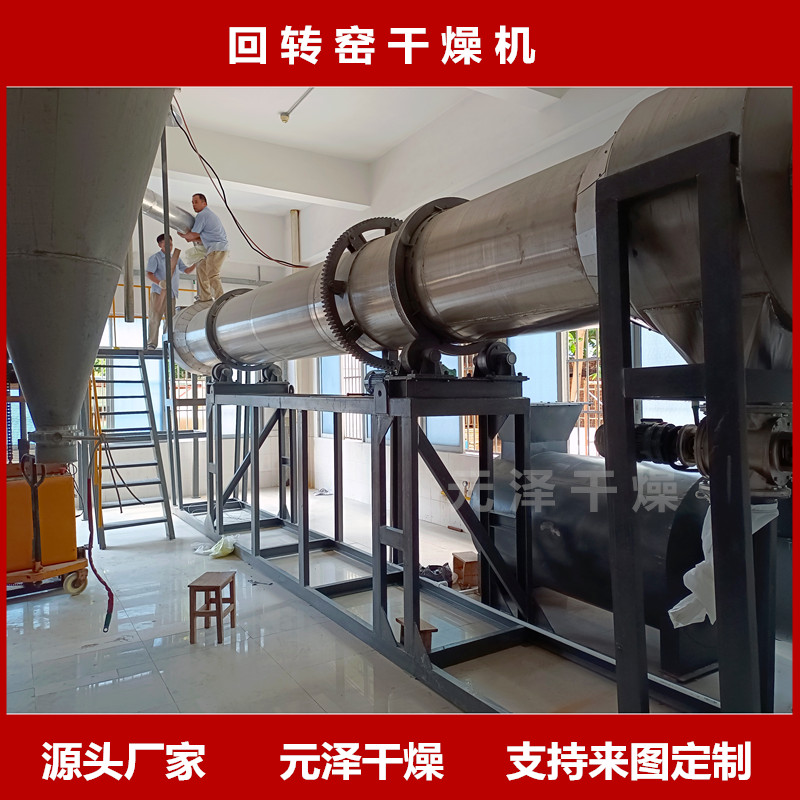 主要由供熱源、上料機、進料機、回轉滾筒、出料機、引風機、卸料器和配電柜構成;脫水后的濕物料從干燥機一端投入后,在內筒均布的抄板器翻動下,物料在干燥器內均勻分布與分散,并與并流(逆流)的熱空氣充分接觸,加快了干燥傳熱,傳質推動力。在干燥過程中,物料在帶有傾斜度的抄板和熱氣流的作用下,可調控地運動至干燥機另一段星形卸料閥排出成品。